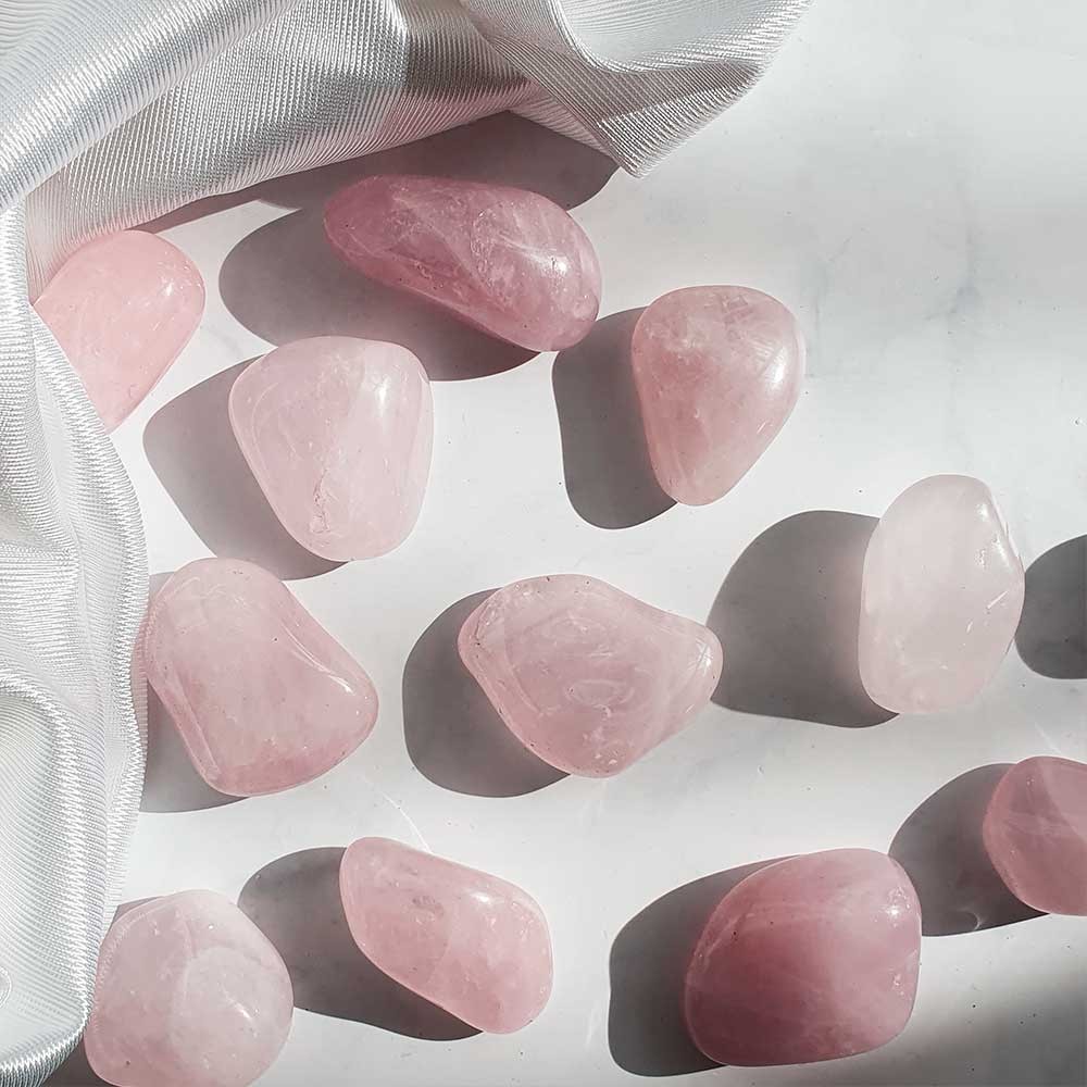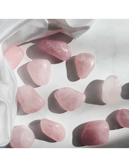 Pietre di quarzo rosa arrotondate, misurano 3x2cm.
