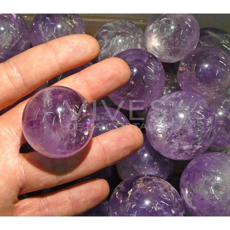 I cristalli di ametista sono piramidali e hanno un brillio vitreo. Di solito l'ametista si trova cristallizzata all'interno di cavità ovali chiuse, chiamate geodi, o rivestendo superfici o cavità aperte, chiamate druse. Può anche essere trovata sotto forma di cristallo singolo.
