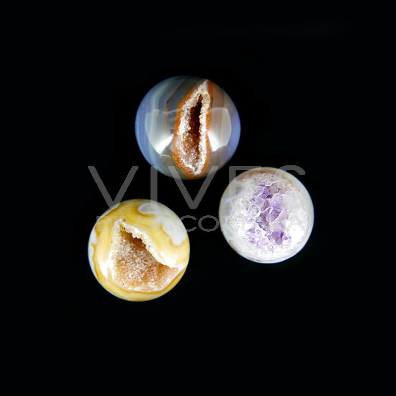 L'Agata è una varietà microcristallina del gruppo del quarzo, un tipo di calcedonia di diversi colori che di solito presenta bande cromatiche. Esistono molti tipi di agate, il cui colore dipende dai diversi materiali che può contenere. Le più abbondanti sono di colore grigio, ma si possono trovare anche in giallo, arancione, bianco, blu, marrone e rosa.