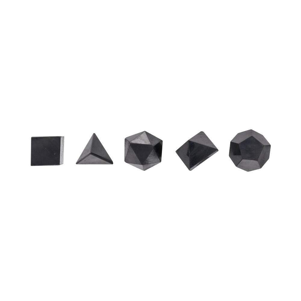Set di minerali intagliati che rappresentano le 5 forme platoniche/gli elementi: