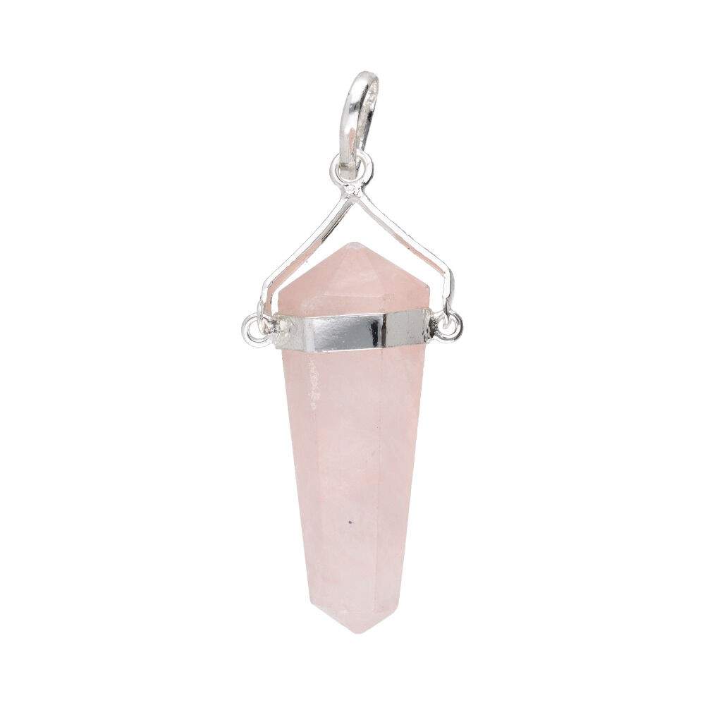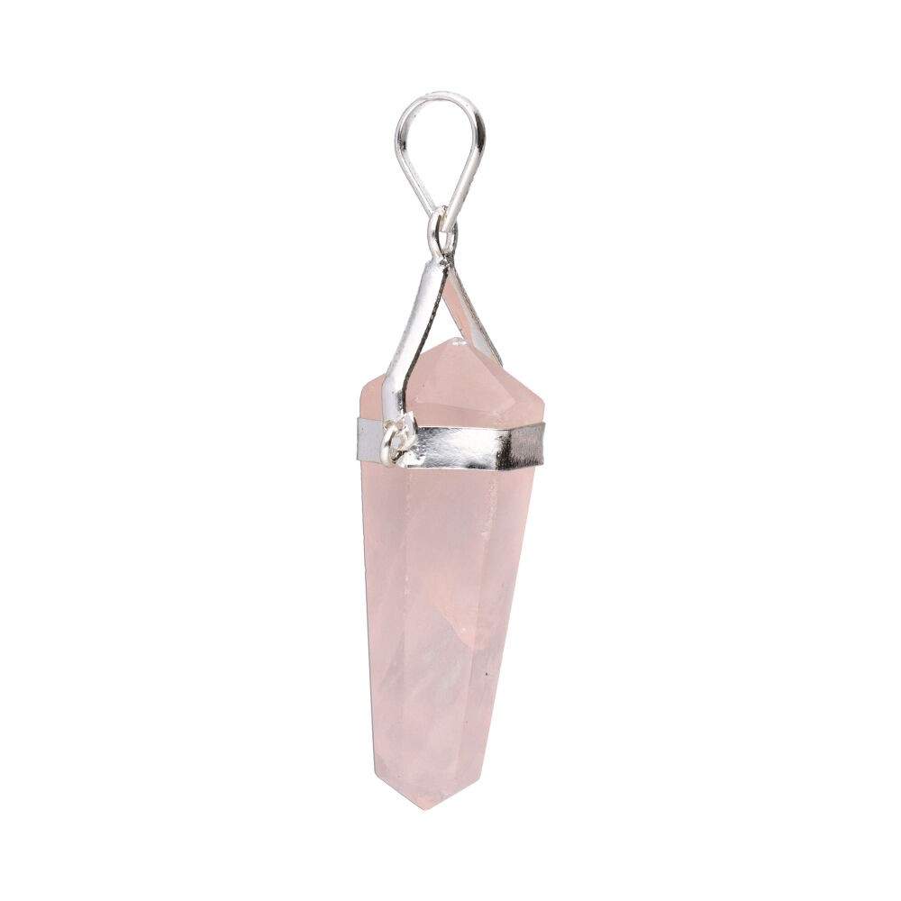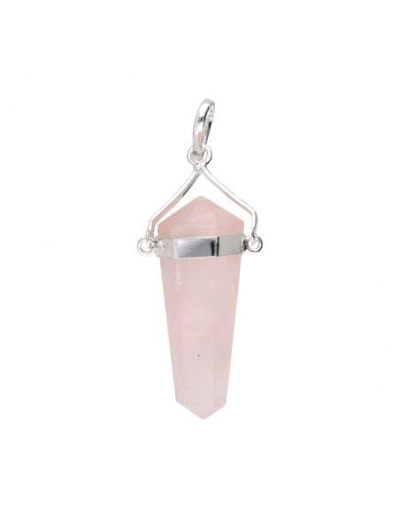 Ciondolo terminato con doppia punta in quarzo rosa placcato in argento.