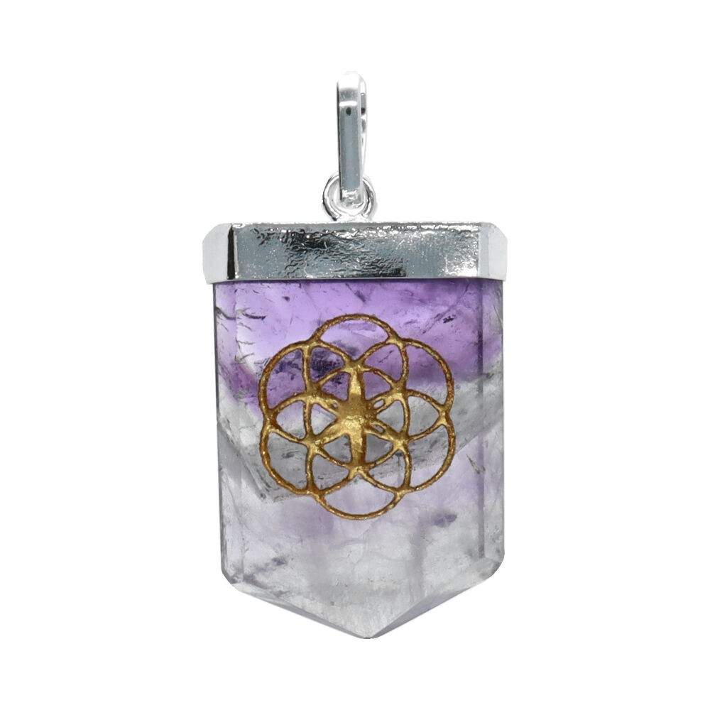 Ciondolo in ametista Seme della Vita in bagno d'argento