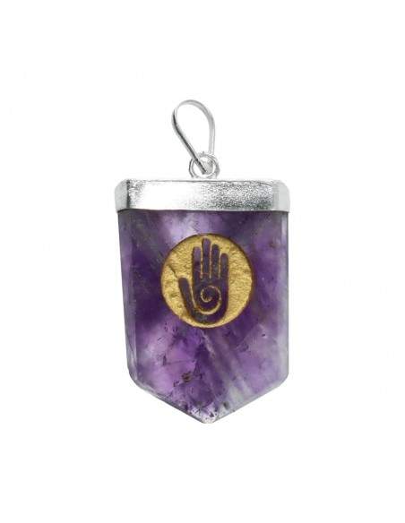 Ciondolo in ametista a forma di mano Hopi con placcatura in argento.