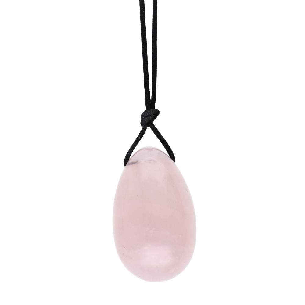 Uovo Yoni in quarzo rosa di medie dimensioni con foro