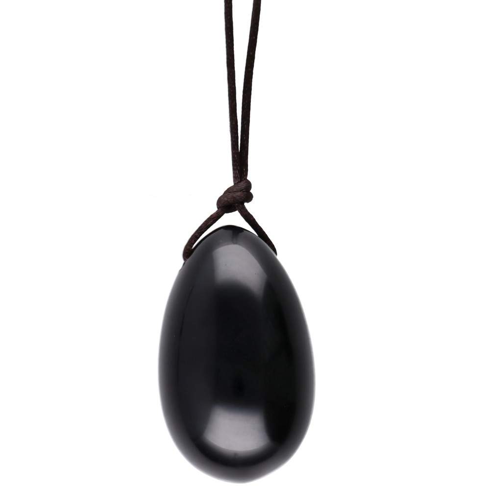 Uovo Yoni in ossidiana di medie dimensioni con foro.