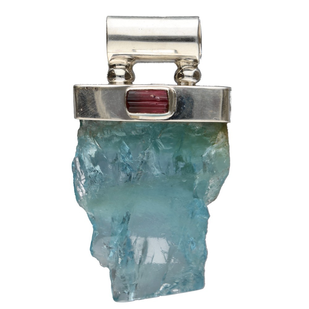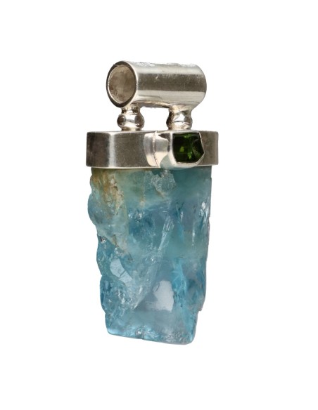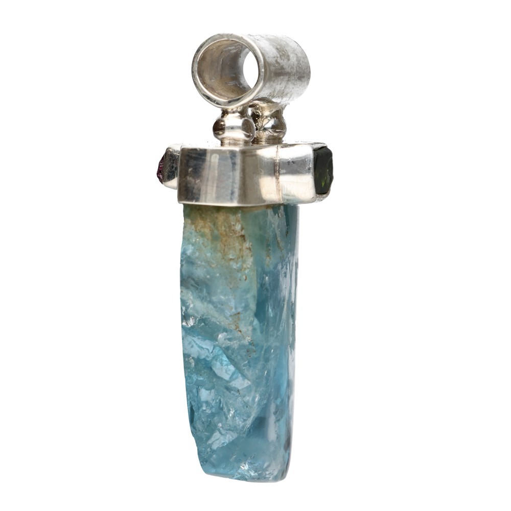 Colgante de Aguamarina con Turmalina Verde y Turmalina Rosa en Plata de Ley 925 (49S)