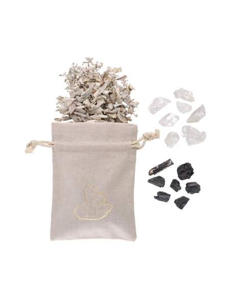 Saco de Protección con Salvia, Turmalina y Cuarzo Blanco