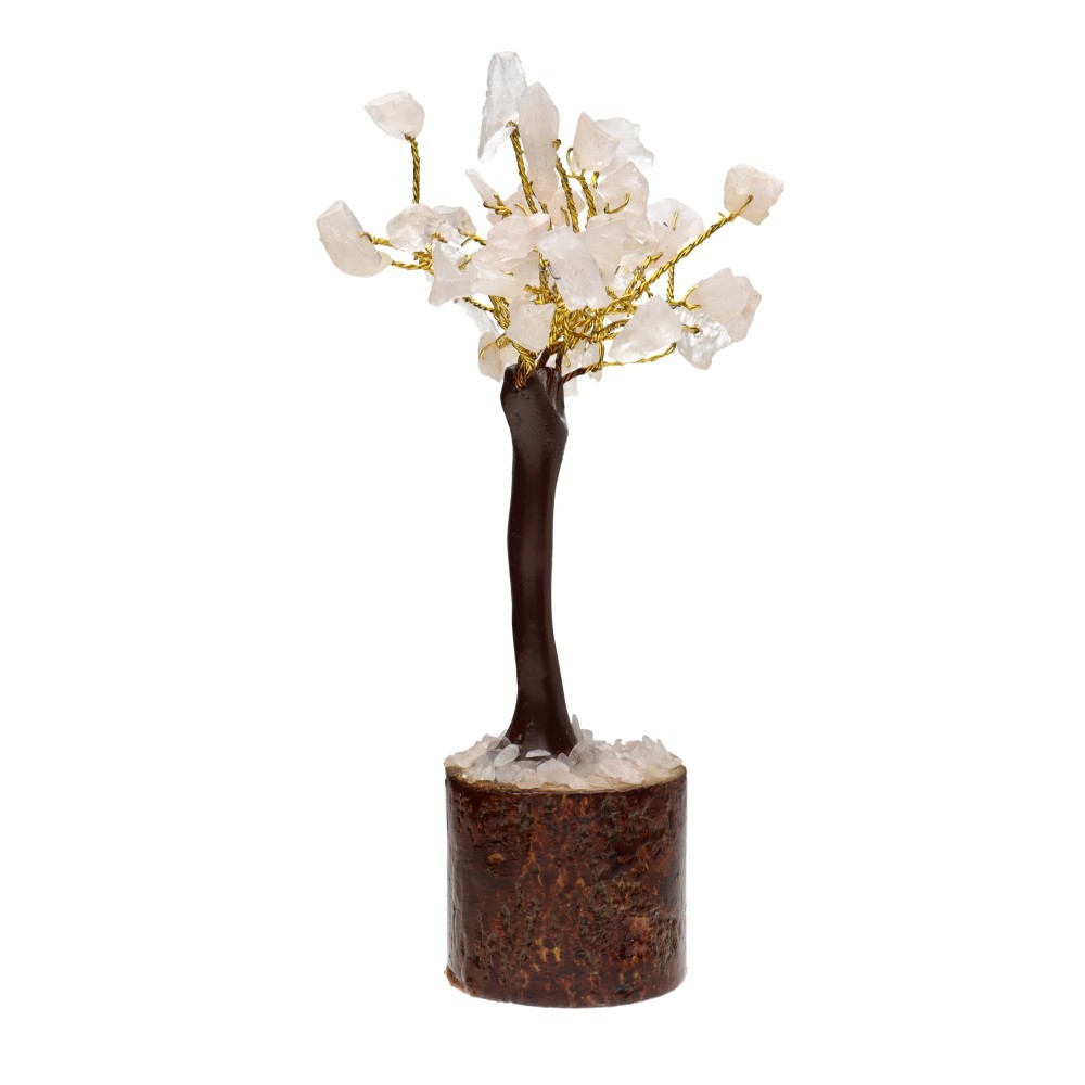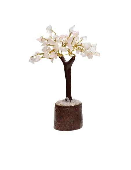 Árbol de Cuarzo Rosa Mini con Base de Madera