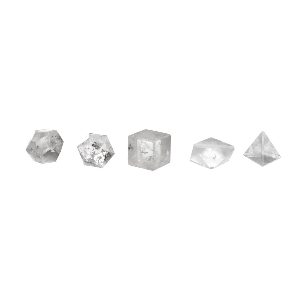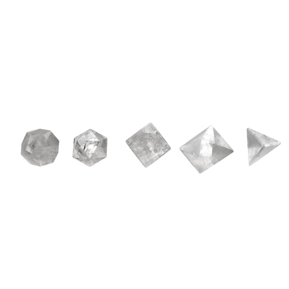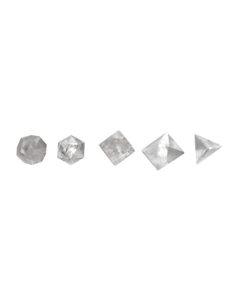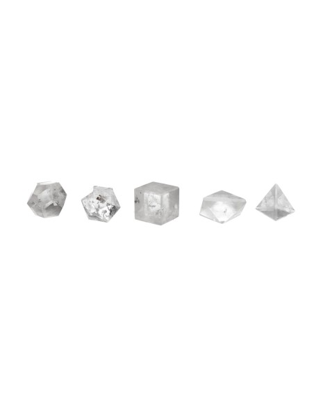 Juego minerales tallados representando las 5 formas platónicas/ elementos: