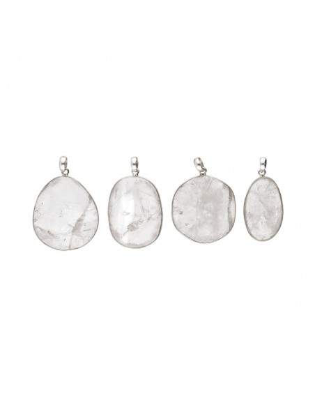 Colgante Óvalo de Cuarzo Aleatorio en Plata de Ley 925