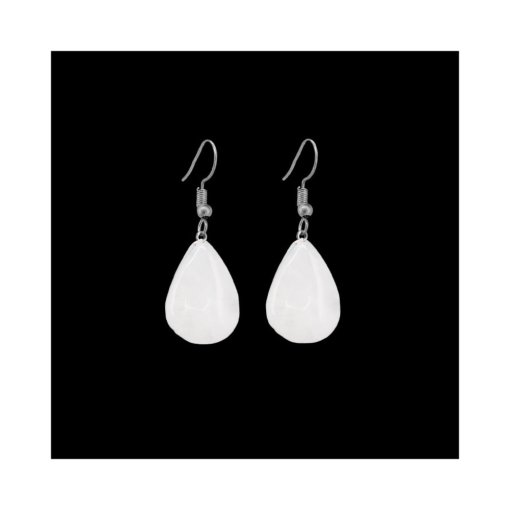 Pendientes de Cuarzo Lechoso Gota en Baño de Plata
