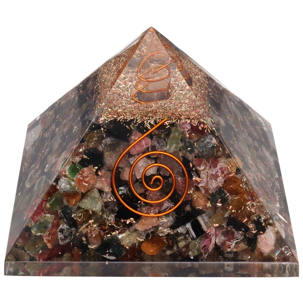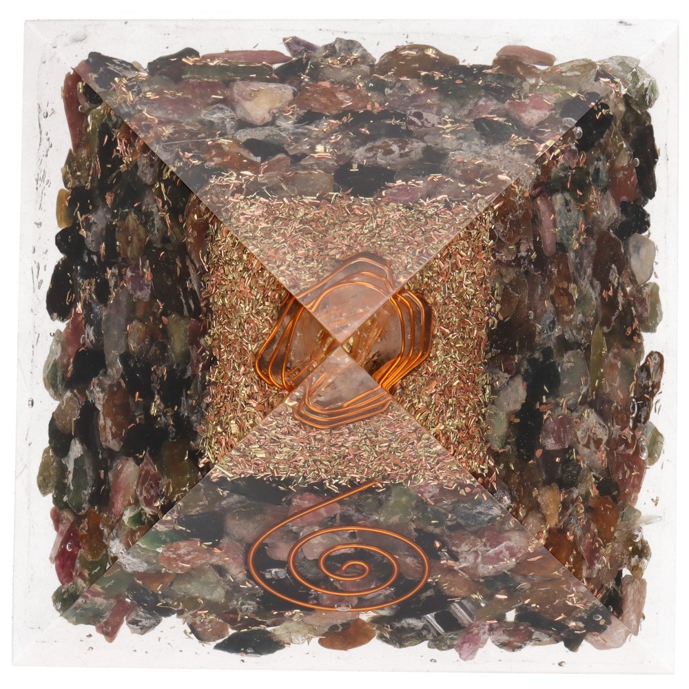 Pirámide Orgonita de Shungit en Resina con Flor de Vida 7x7cm