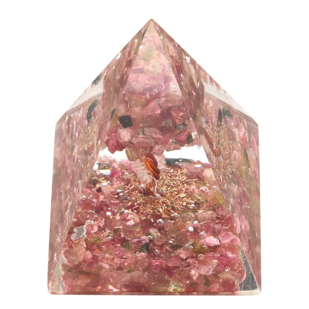 Pirámide Orogonita de Turmalina Rosa en Resina con Árbol 4x4cm