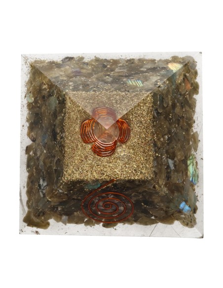 Pirámide Orgonita de Labradorita en Resina con Espiral 7x7cm