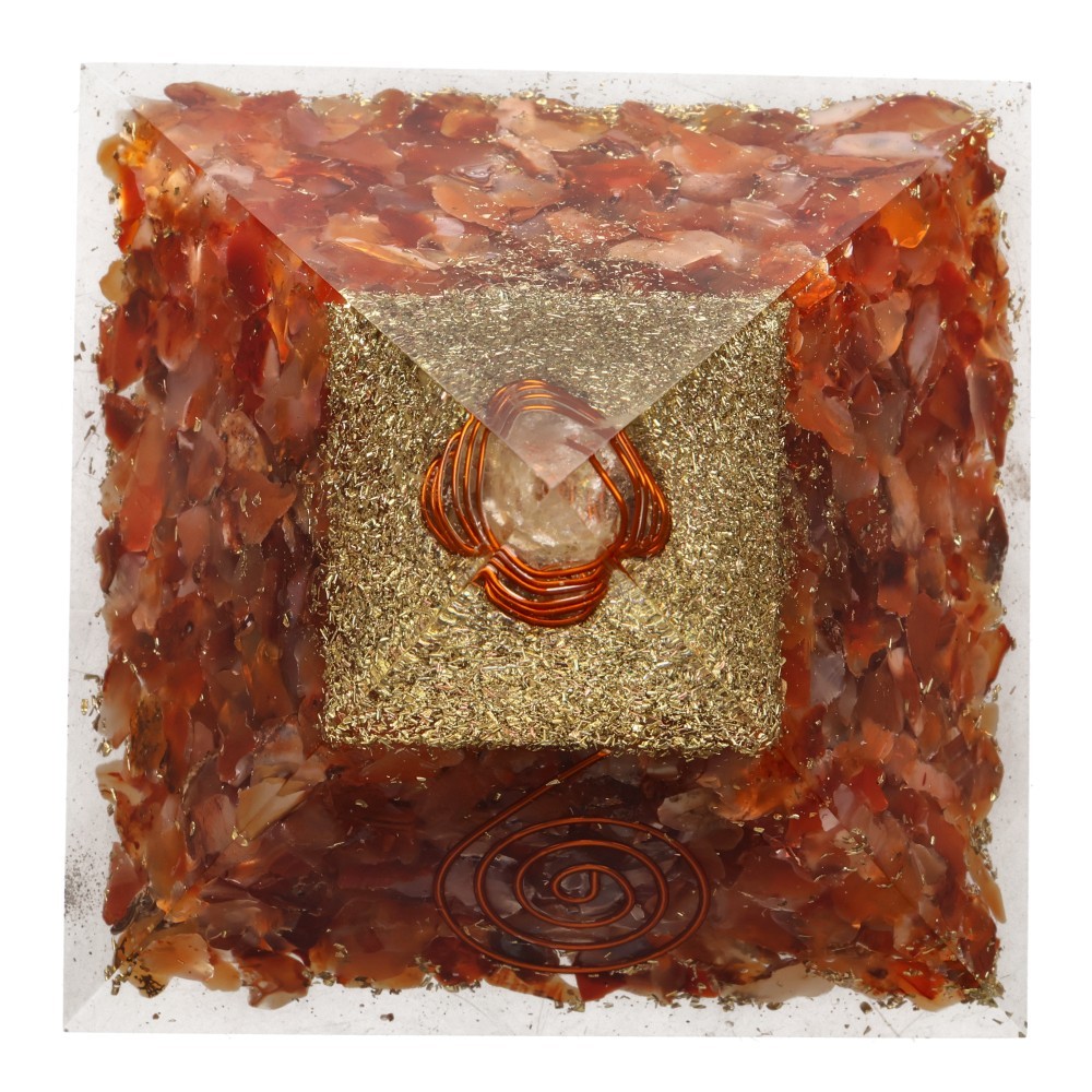 Pirámide Orgonita de Cornalina en Resina con Espiral 7x7cm