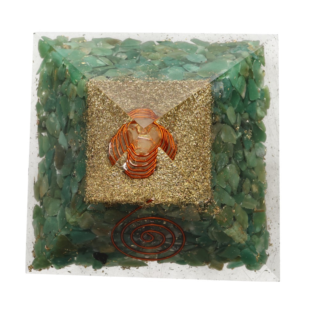 Pirámide Orgonita de Jade Verde en Resina con Espiral 7x7cm