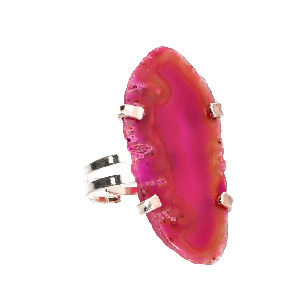 Anel em ágata fúcsia tingida com banho de prata