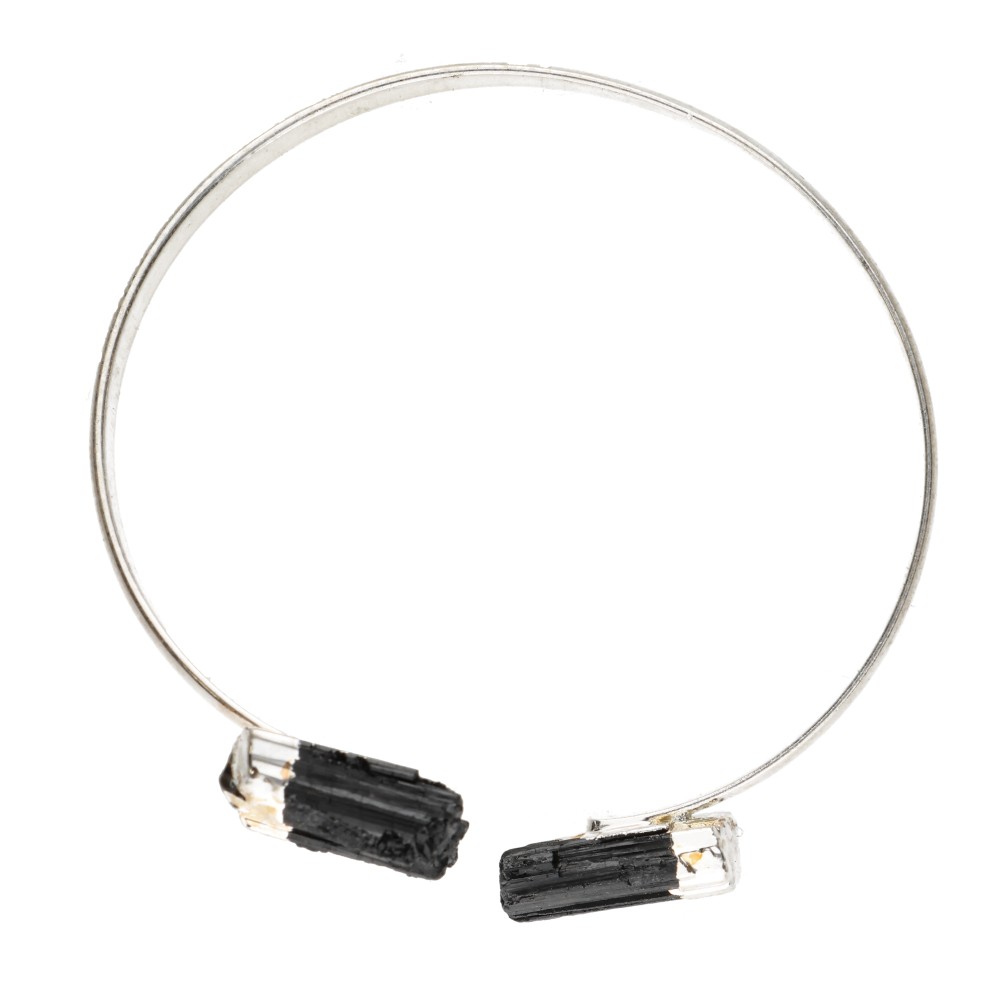 Pulseira de turmalina preta em bruto com banho de prata -B29-
