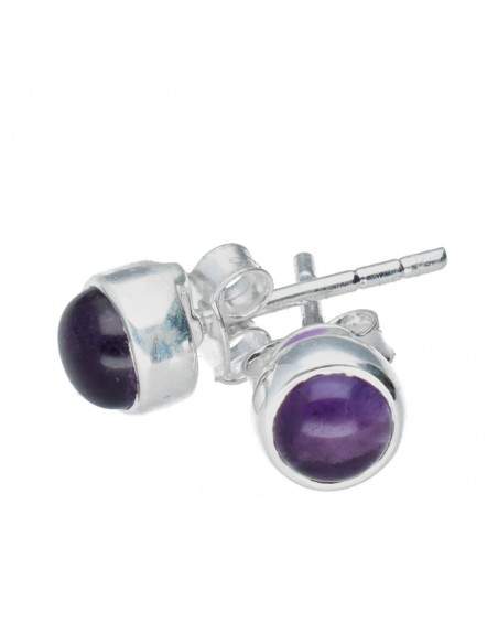 Brincos de botão em ametista Círculos pequenos em prata de lei 925