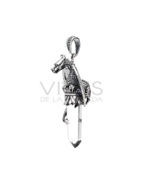 Dragon Pendant Open Wings em Punta de Cuarzo M em Sterling Silver 925