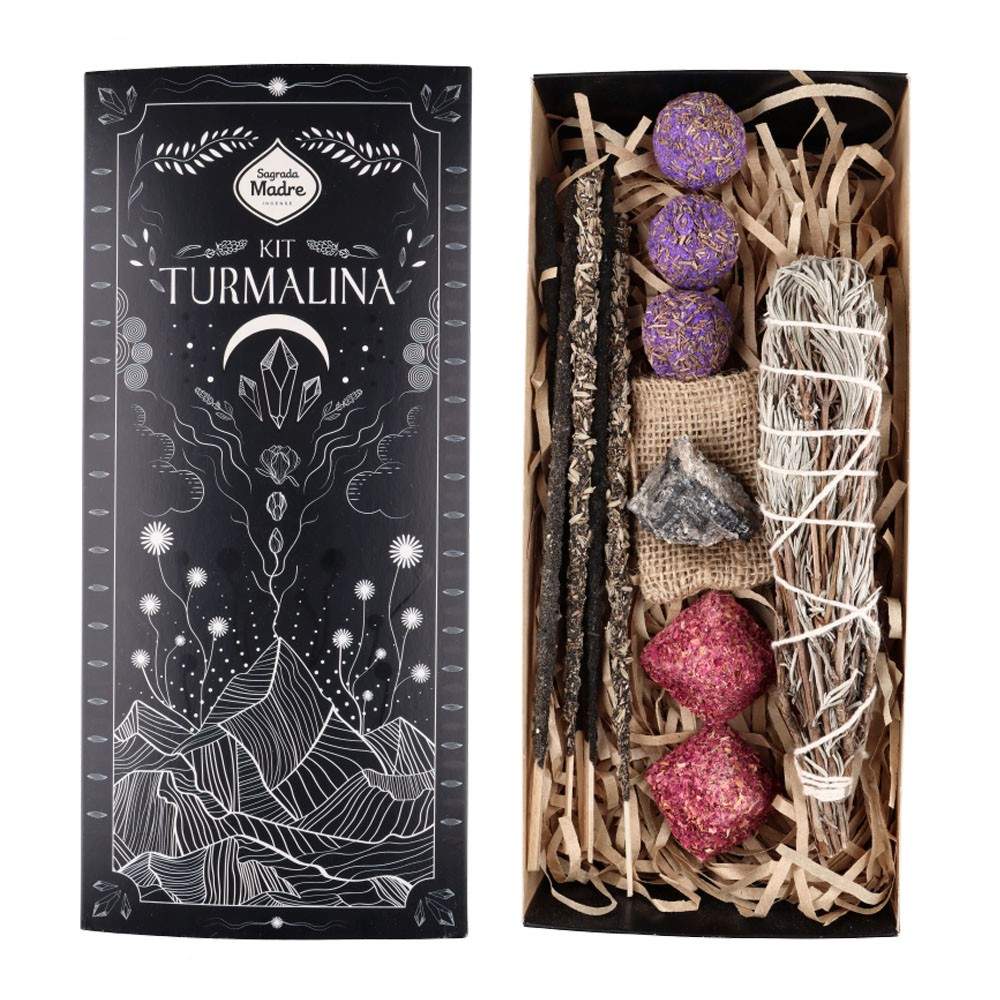 ?? ????????? Um kit único que combina a magia das ervas aromáticas com o poder protetor e energético da pedra Turmalina. Uma porta de entrada para o equilíbrio, harmonia, bem-estar e purificação. o que é que este poderoso kit contém? 1 perfume de lavanda 2 incensos de copal 2 incensos de olíbano 2 Incensos de lavanda 2 pirâmides energéticas de rosas 3 bombas desinfectantes de alfazema e olíbano 1 pedra de turmalina negra