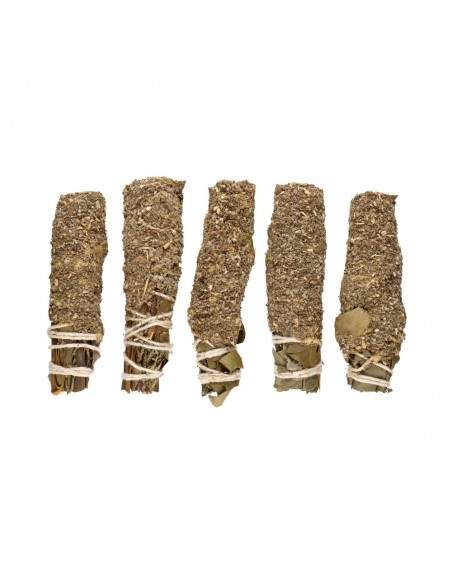 chá de ervas artesanal Feito à mão Composição: ervas aromáticas, resinas naturais, aglutinante natural e óleos essenciais. Conteúdo: 5 unidades (11cm de comprimento) Feixe (centro) de cedro, louro e eucalipto. Utilização: para fumar Duração: cada fumo dura 2 horas Tamanho da caixa: 18x4x12 Purificação - cura