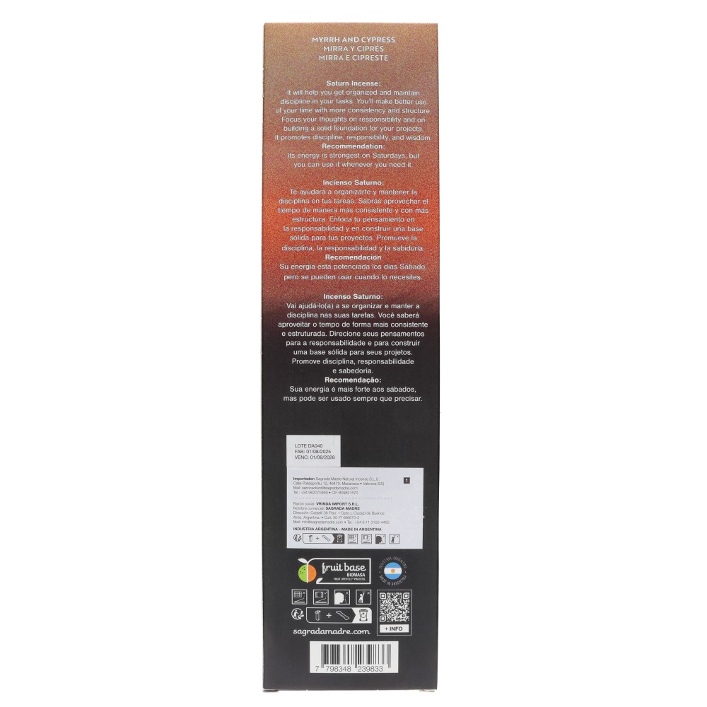 Saturno: A sua energia é reforçada aos sábados, mas pode ser usada sempre que precisar. Aroma: Mirra e Cipreste.