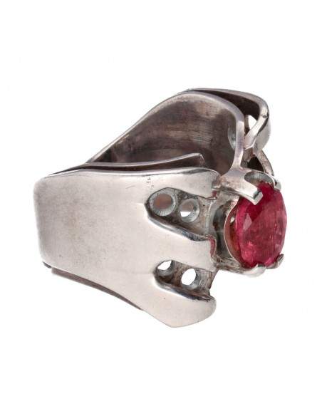 Anel Turmalina Rosa em Prata de Lei 925 (68F)