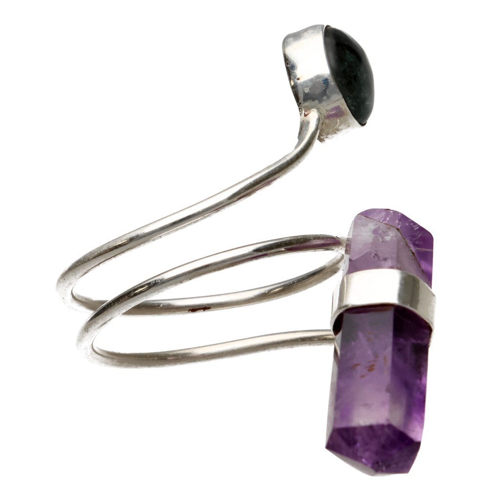 Anel Turmalina Azul e Ametista em Prata de Lei 925 (28R)