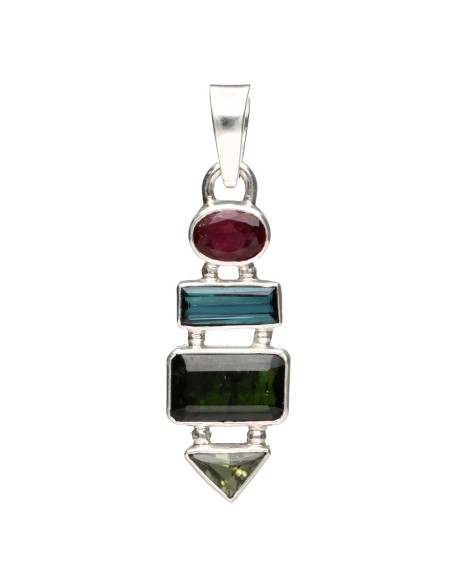 Pingente Turmalina Verde Azul Vermelha em Prata de Lei 925 (54S)