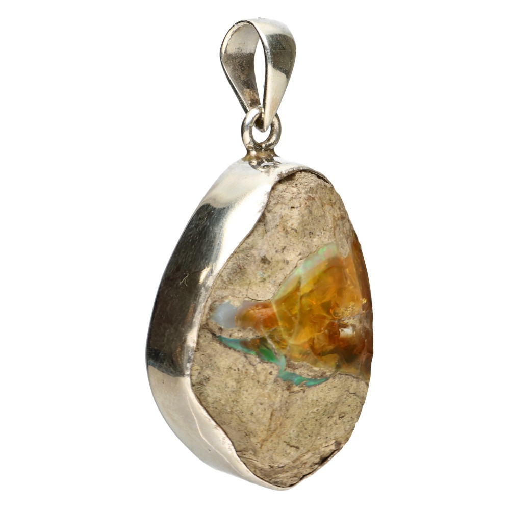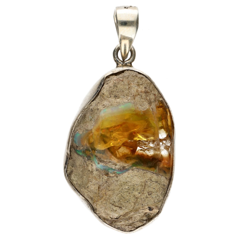 Pendente Opala em bruto em prata de lei 925 (9T)
