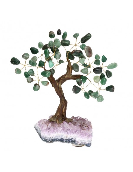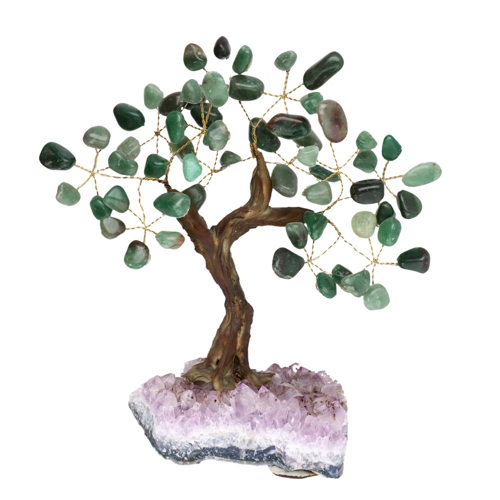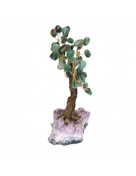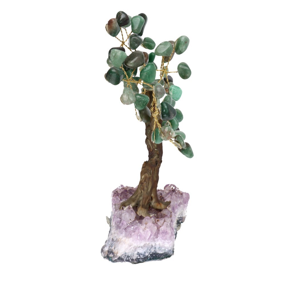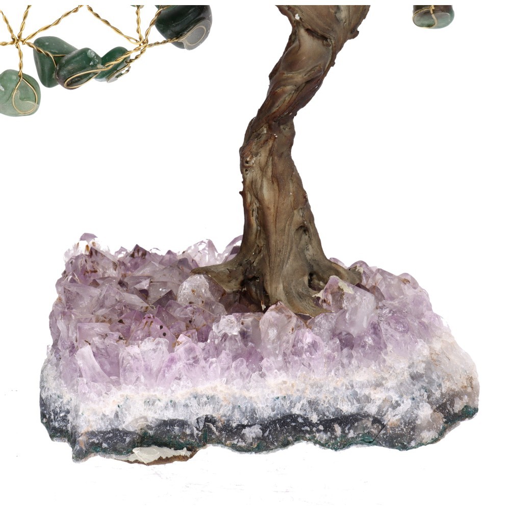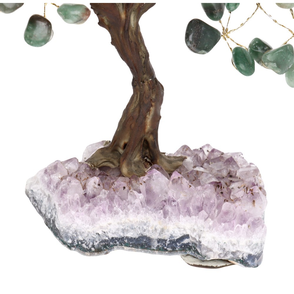 Pequena árvore de quartzo verde com base de ametista Druse