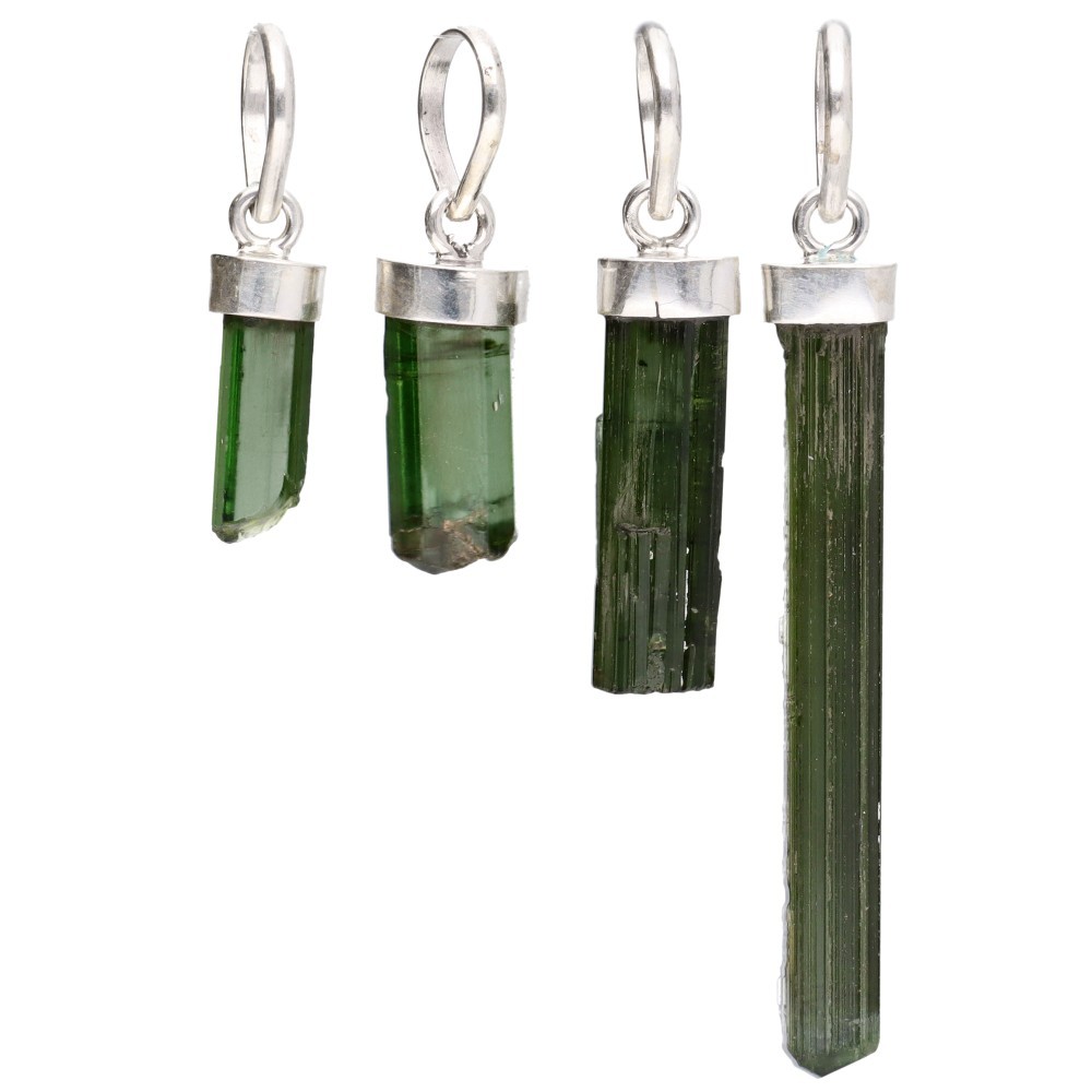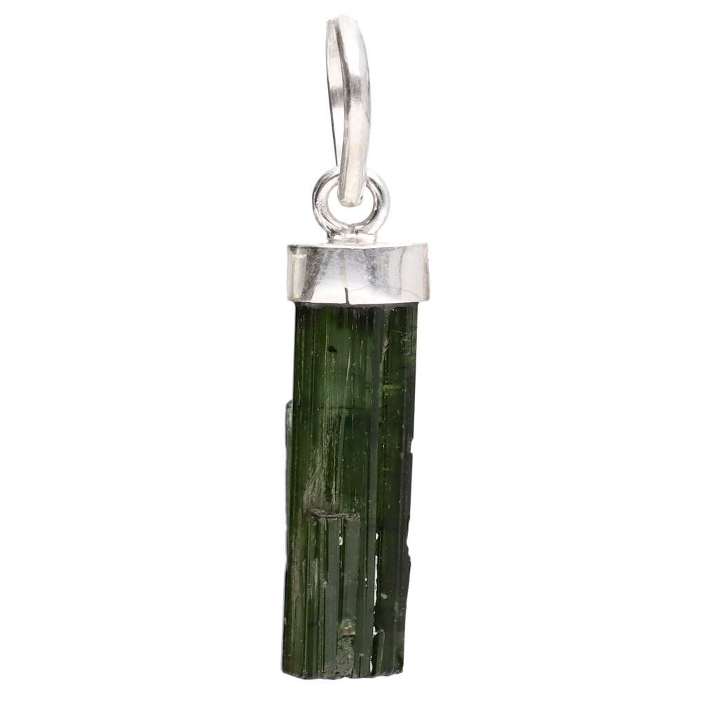 Pingente de turmalina verde em bruto em prata de lei 925