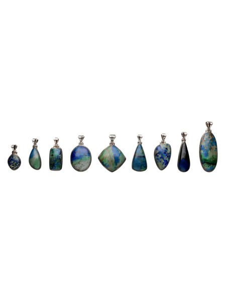 Pingente aleatório de azurite e malaquite em prata de lei 925