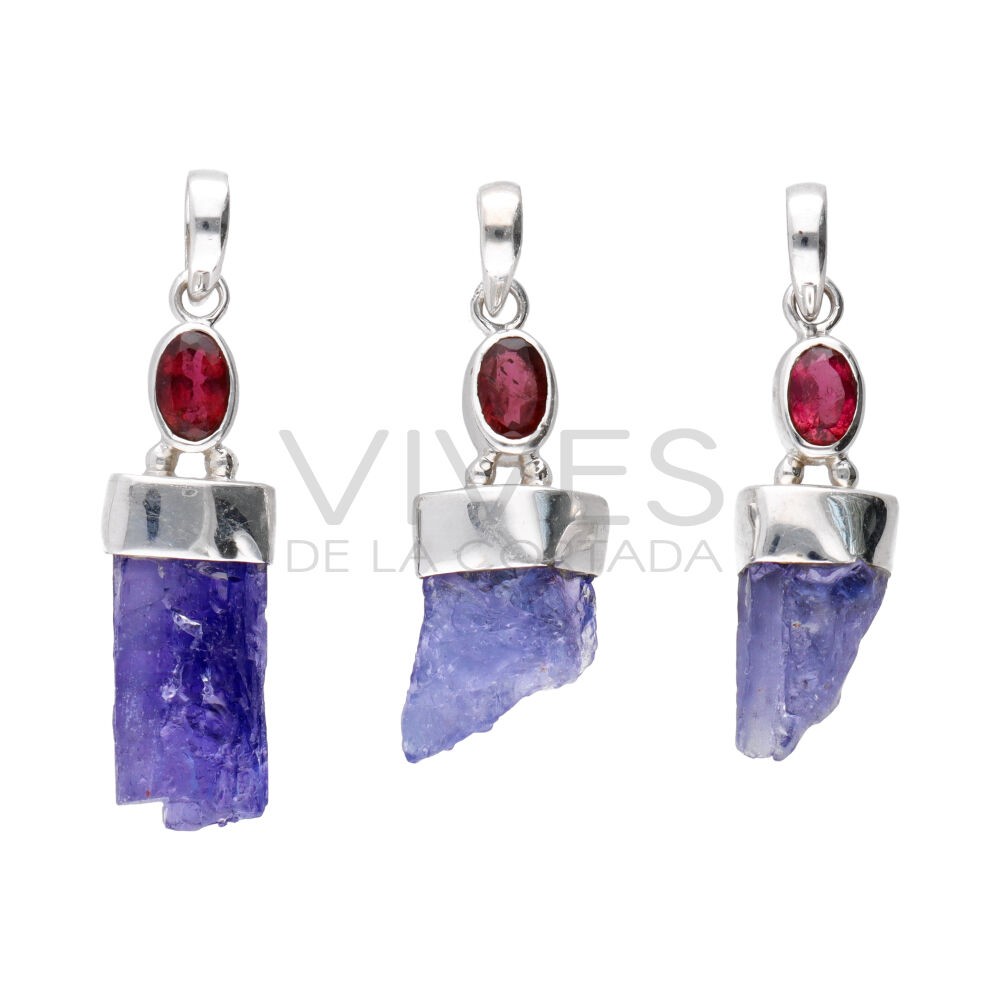 Pingente tanzanita em Bruto com Rubelite em Sterling Silver 925