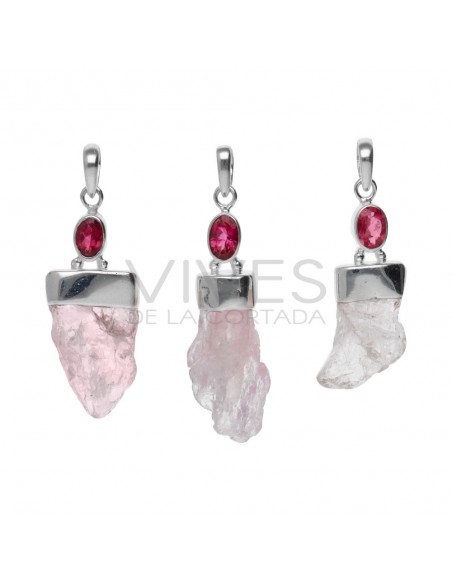 Morganite em bruto com pingente de rubelite em prata de lei 925