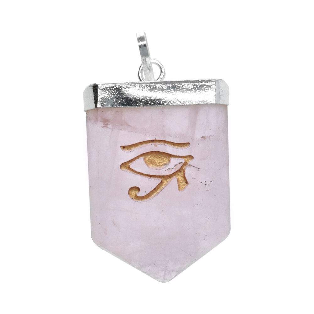 Pingente Olho de Hórus de Quartzo Rosa com banho de prata