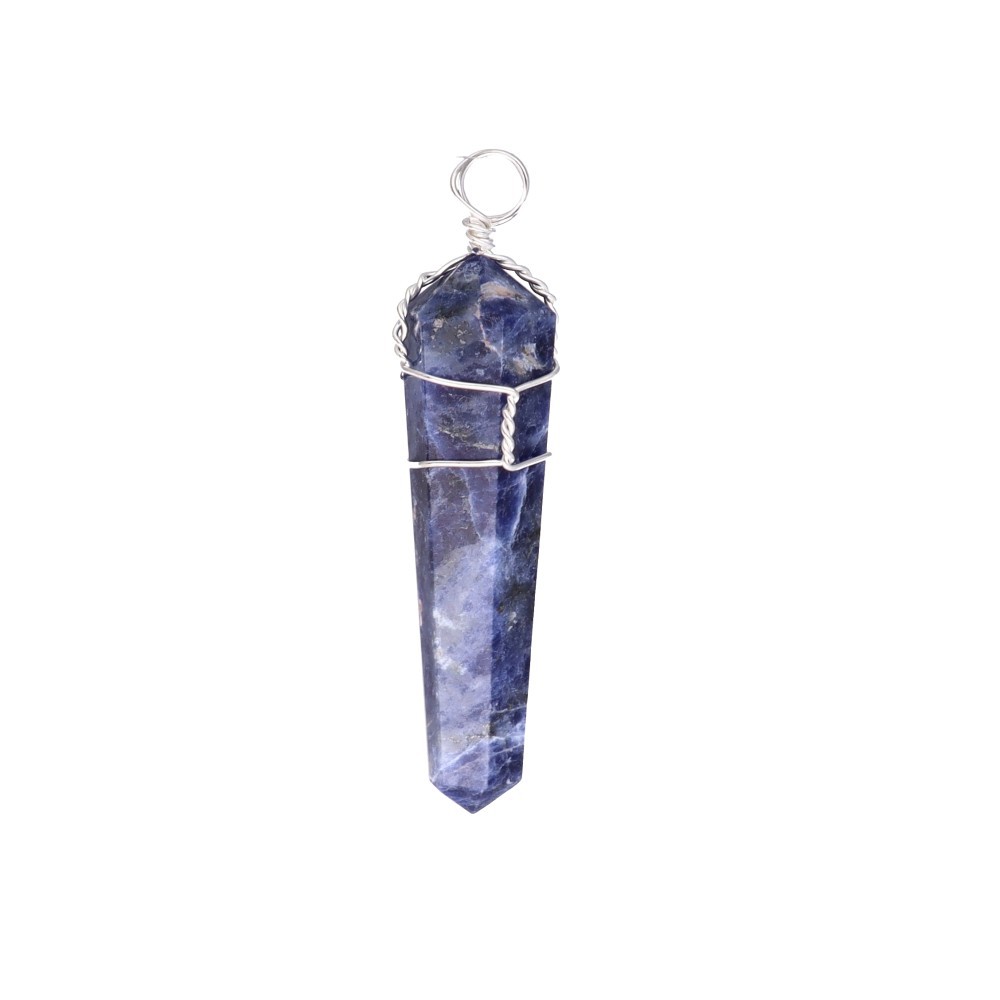 Pingente de Sodalita Bi-Terminado Banhado a Prata