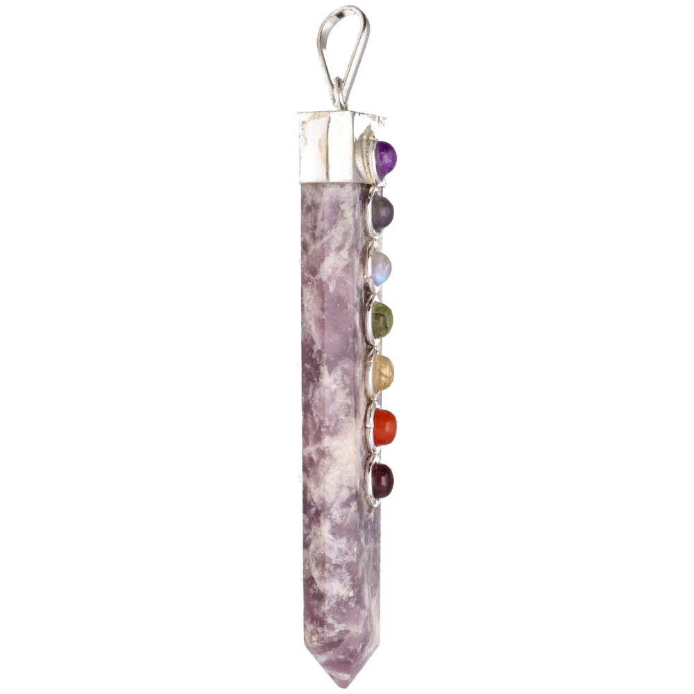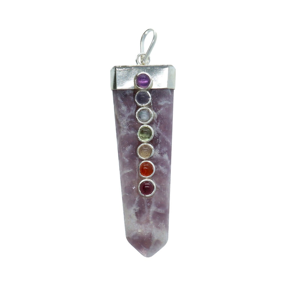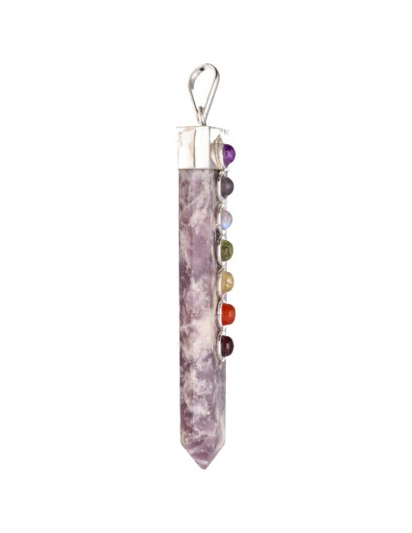Pendente de mica lepidolita de ponta plana com chakras banhado a prata