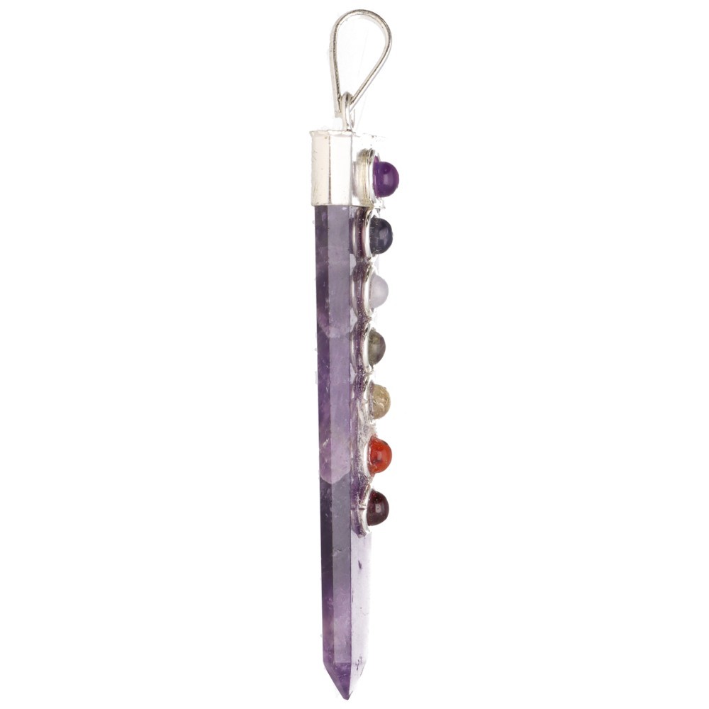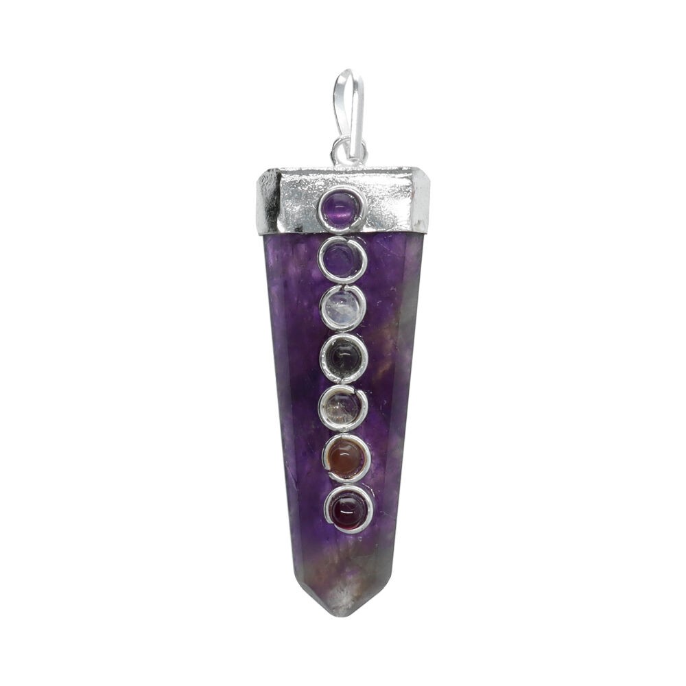 Ametista banhada a prata de ponta plana com pingente de chakras