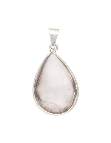 Pingente de gota de calcedónia cristalizada com banho de prata