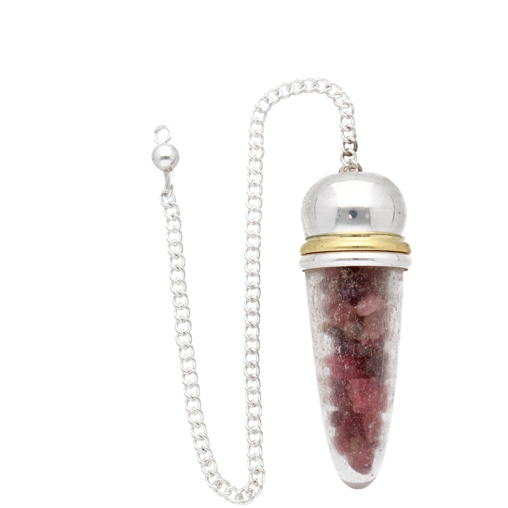 Pêndulo de gota de turmalina rosa com resina e testemunha metálica