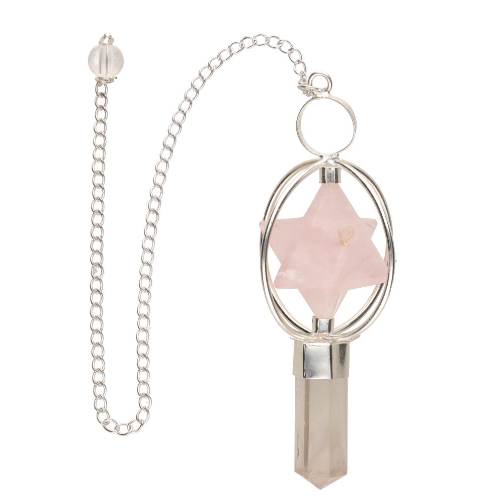 Pêndulo de Quartzo com Merkaba de Quartzo Rosa