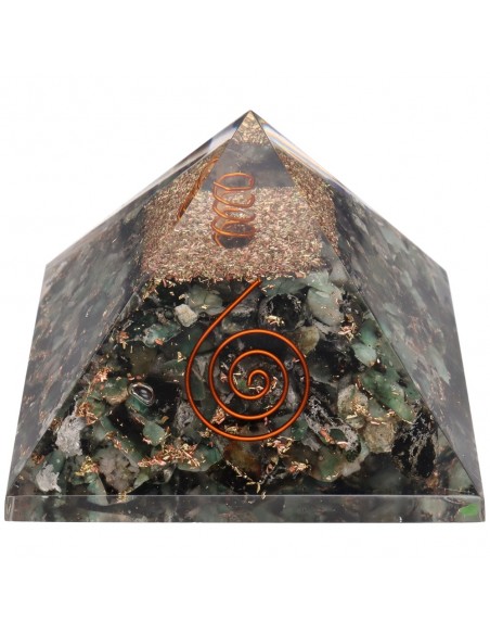 Pirâmide de resina esmeralda com espiral 7x7cm