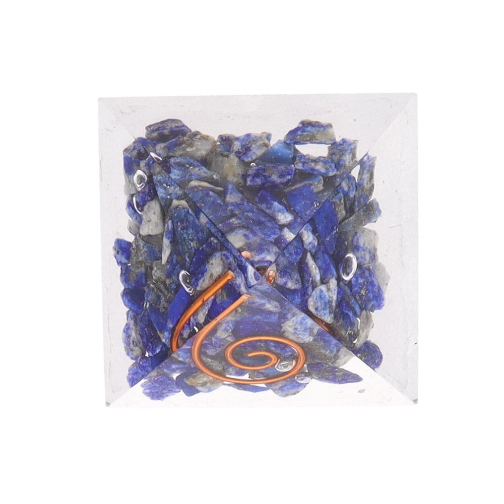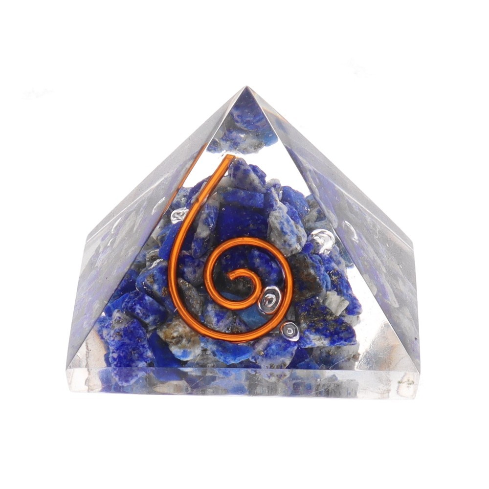 Pirâmide de resina de lápis-lazúli com espiral 3x3cm