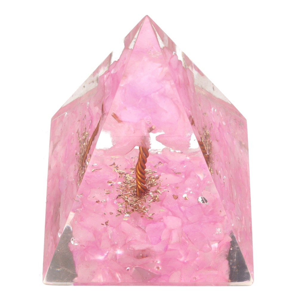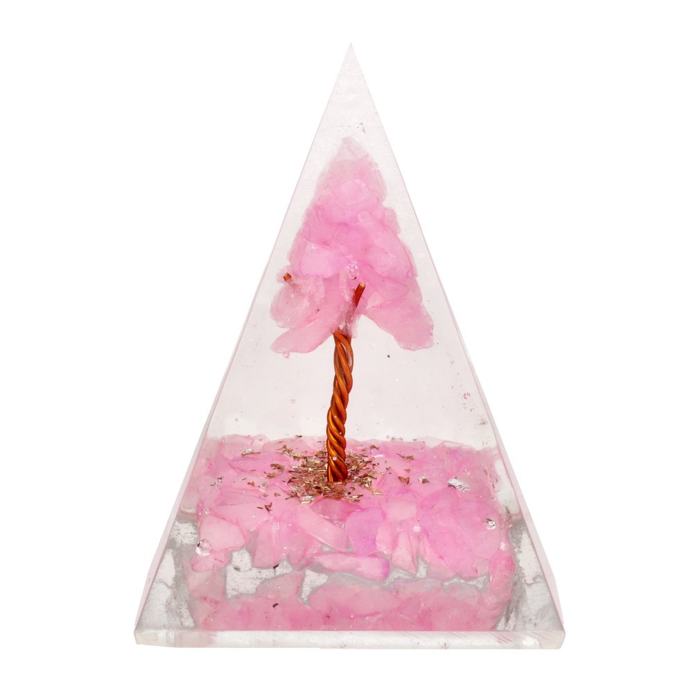 Pirâmide de Orgonite de Quartzo Rosa em Resina com Árvore 4x4cm