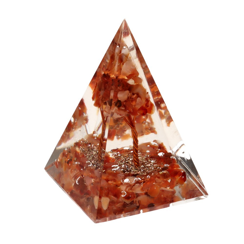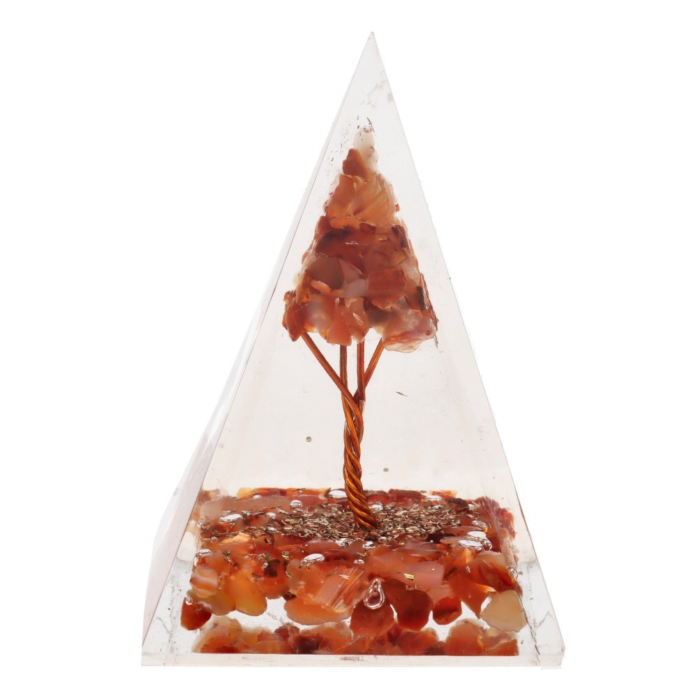 Pirâmide de Orgonite de cornalina em resina com árvore 4x4cm