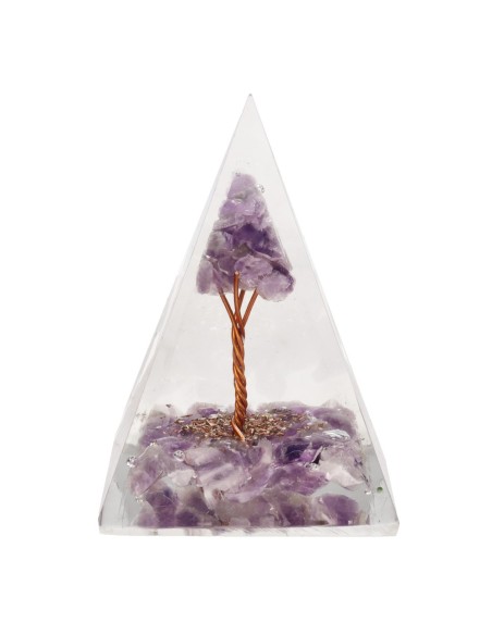 Pirâmide de Orogonite Ametista em Resina com Árvore 4x4cm