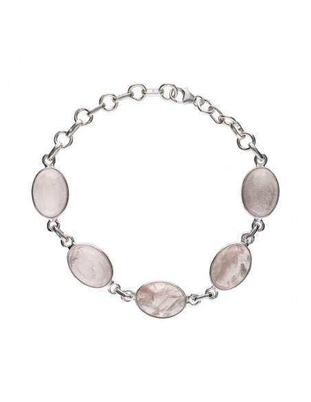 Pulseira de Quartzo Rosa em Prata de Lei 925 C
