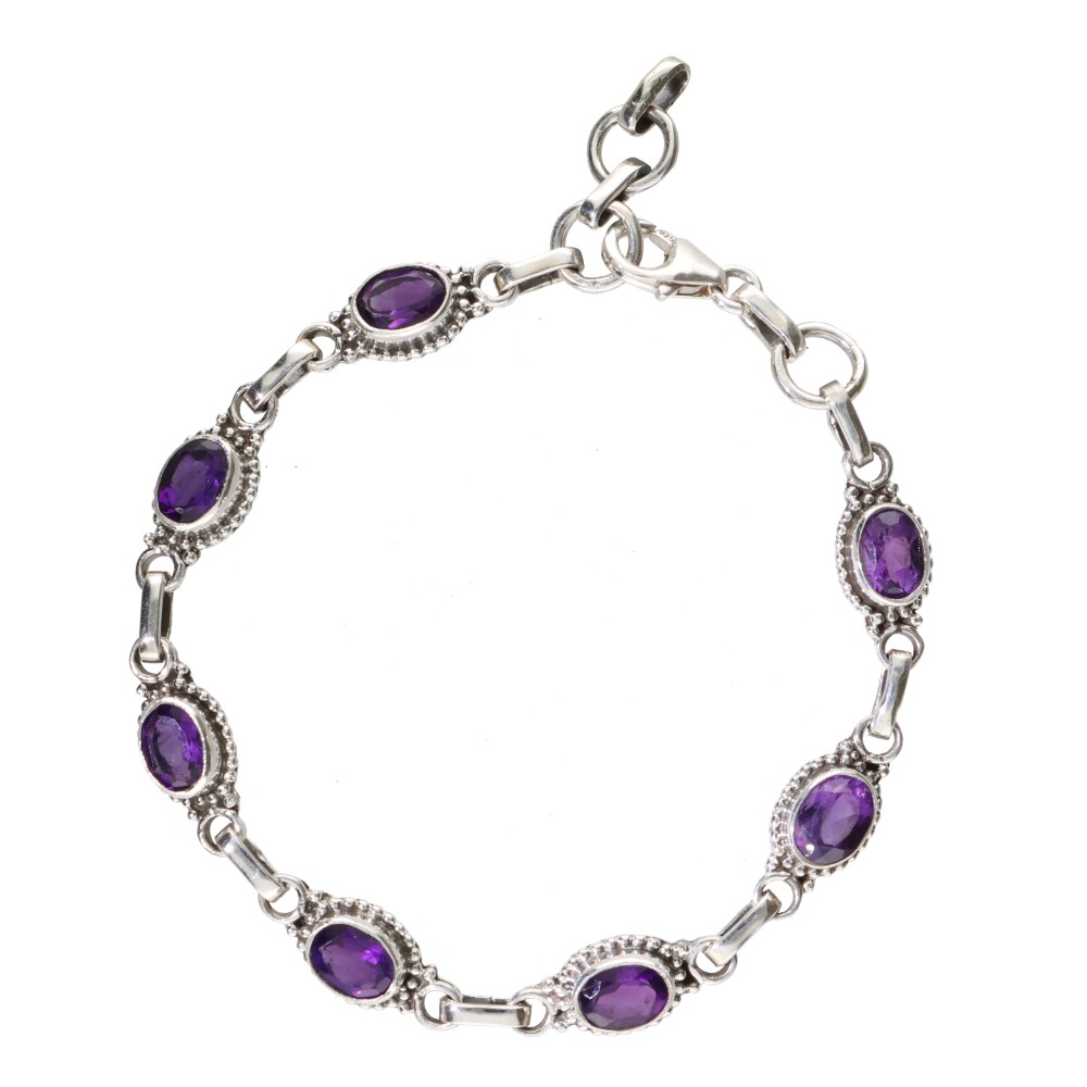Pulseira Boêmia Oval de Ametista em Prata de Lei 925